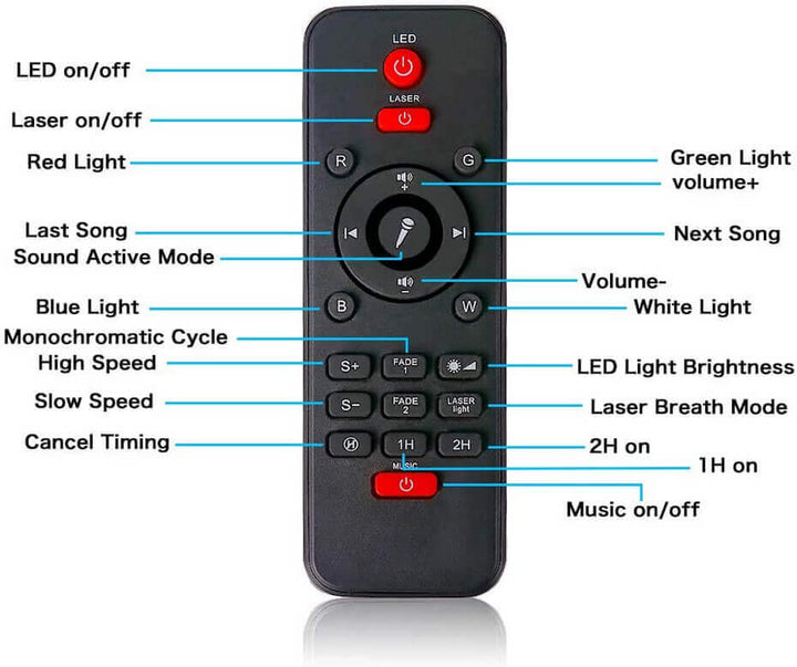 - ✨【Remote Control and Music Activated】📱 This latest Galaxy projector with remote control allows you to freely turn the lights on/off, switch lighting modes, dance mode, adjust the volume or set the auto-off timer. You can also choose to set the lights to rotate dynamically or change to static, simply by changing the speed via the remote control. When the dance/sound-activated mode is on, it's the best companion for party dancing, the lights will follow the rhythm of the music!